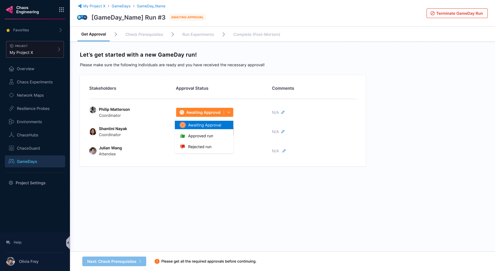 5. Once the stakeholders approve the GameDay run, you can proceed.