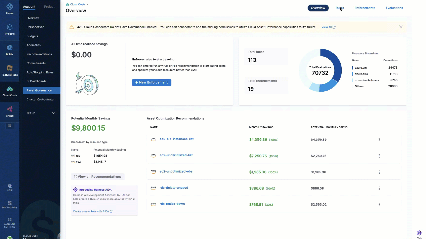By enforcing governance rules, asset governance policies play a crucial role in governing cloud assets and optimizing costs. At times, authoring these policies can be challenging and confusing. In such situations, the Harness AI can assist with creating policies. Harness AI offers a user-friendly interface and serves as an excellent starting point for establishing the necessary policies. By leveraging this tool, you can streamline the process of policy development and ensure that the required policies are effectively implemented.