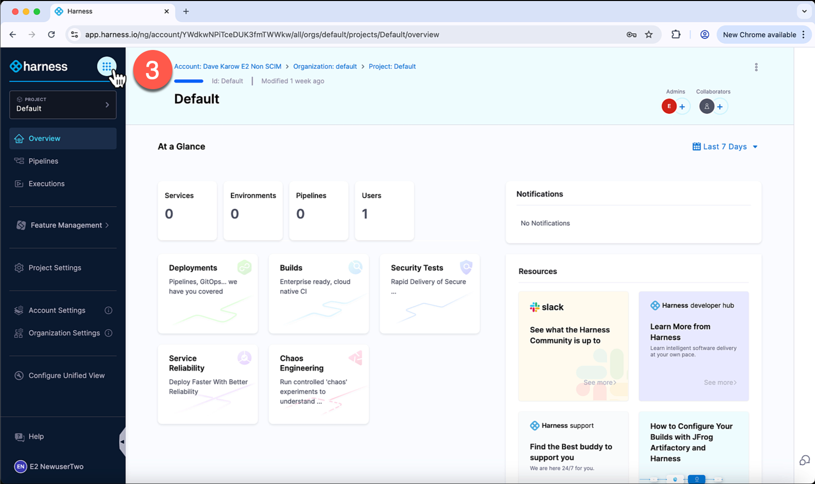 The first time you log into Feature Management & Experimentation (FME) on Harness you will see a screen like the one below.