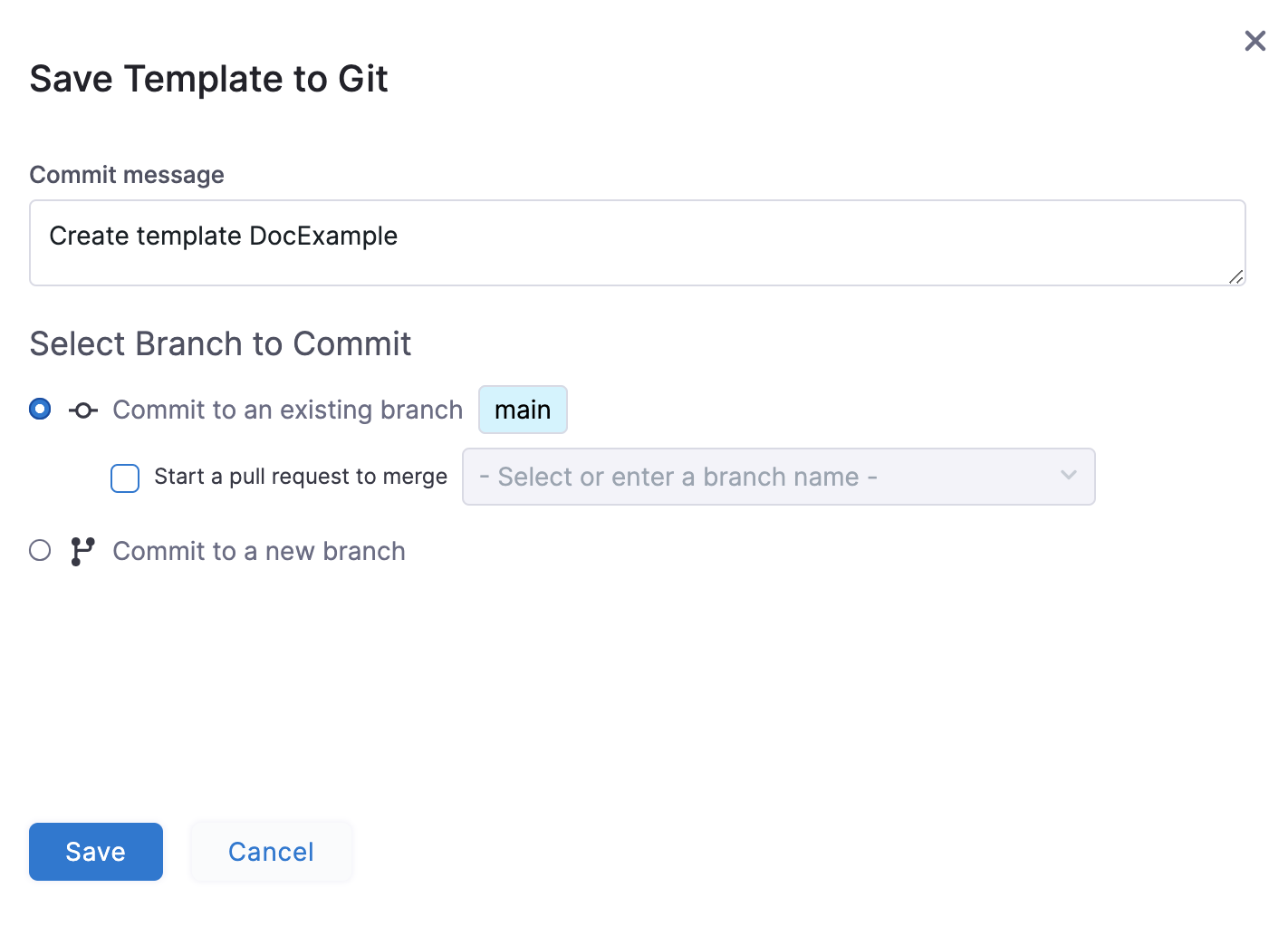Select Save. The Save Template to Git settings open.