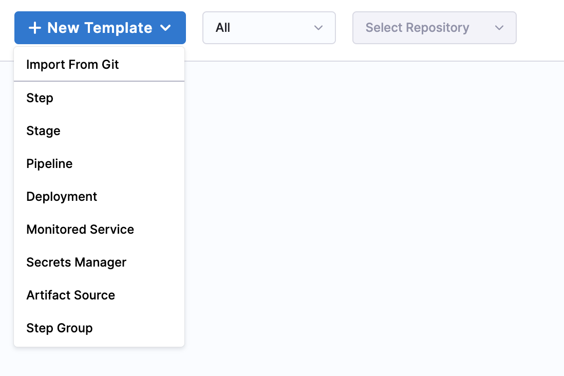 The stage type you select determines where you can reference the step group template in the pipeline. If you select Deploy as the stage type, you can reference the template in any pipeline's deploy stage. If you select Build as the stage type, you can reference the template in any pipeline's build stage.