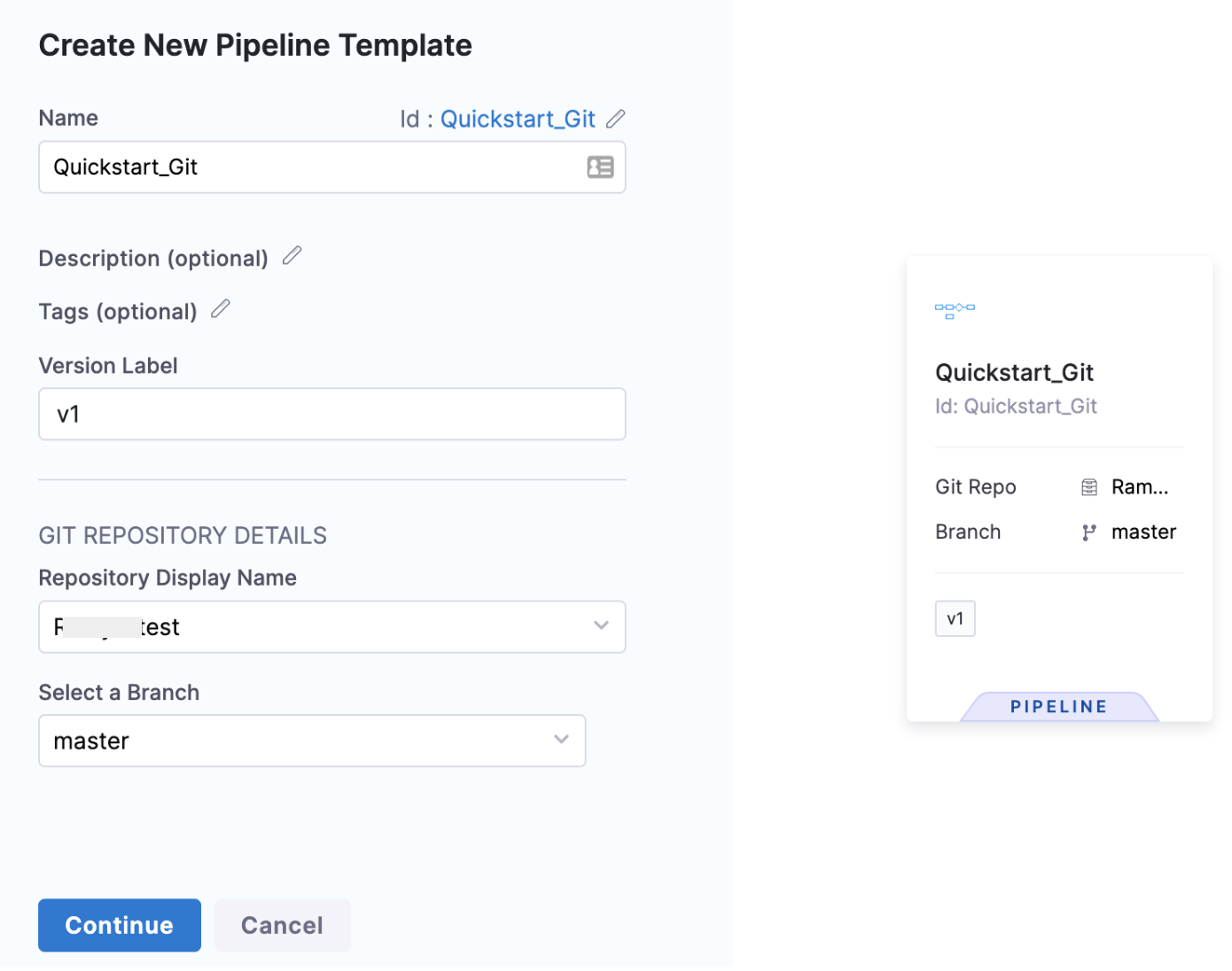 . Versioning a template enables you to create a new template without modifying the existing one. For more information, go to Versioning.You'll see the Git Repository Details option only if you're creating a template on a Git-enabled project. For more information, go to Harness Git Experience overview.