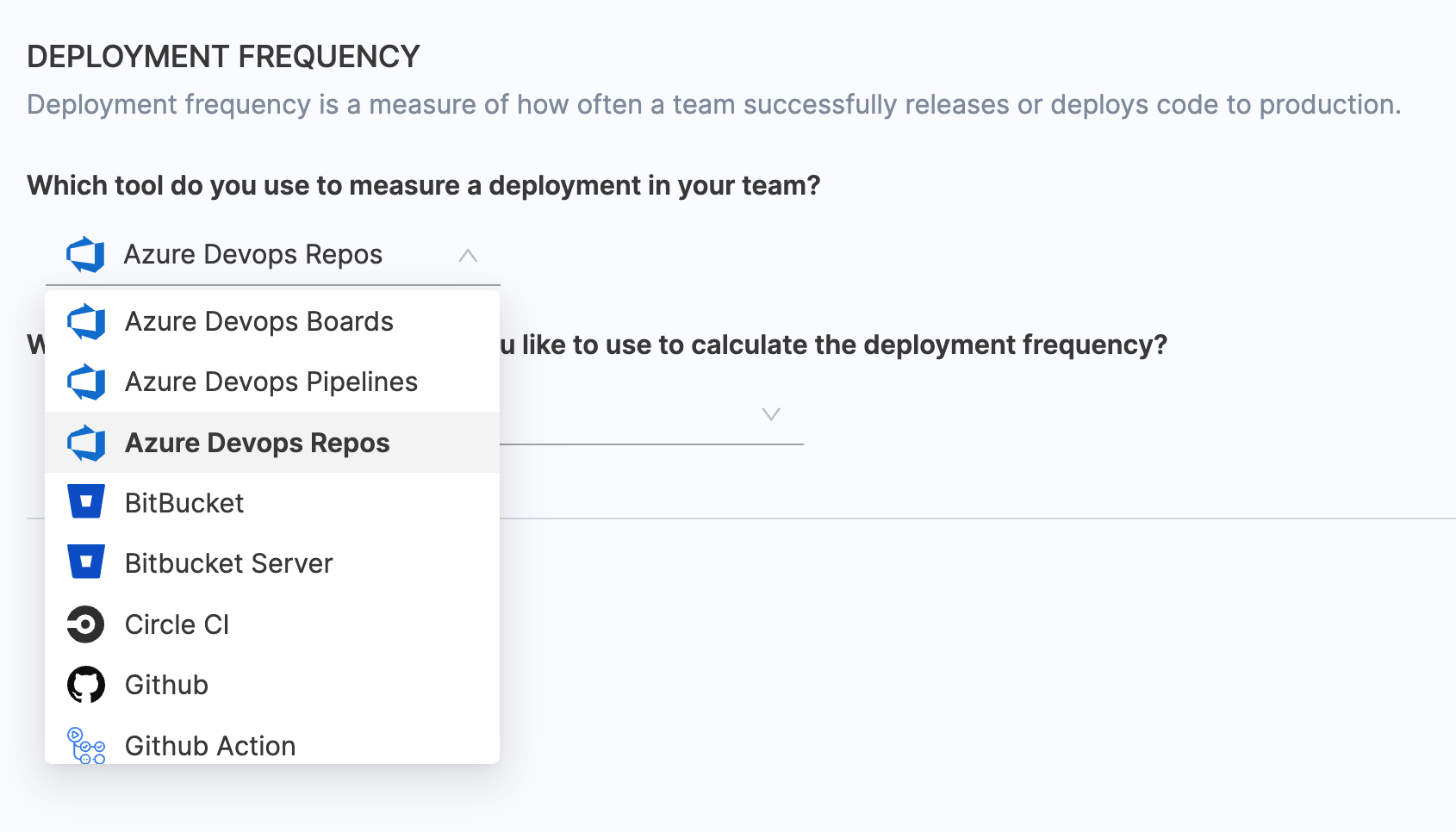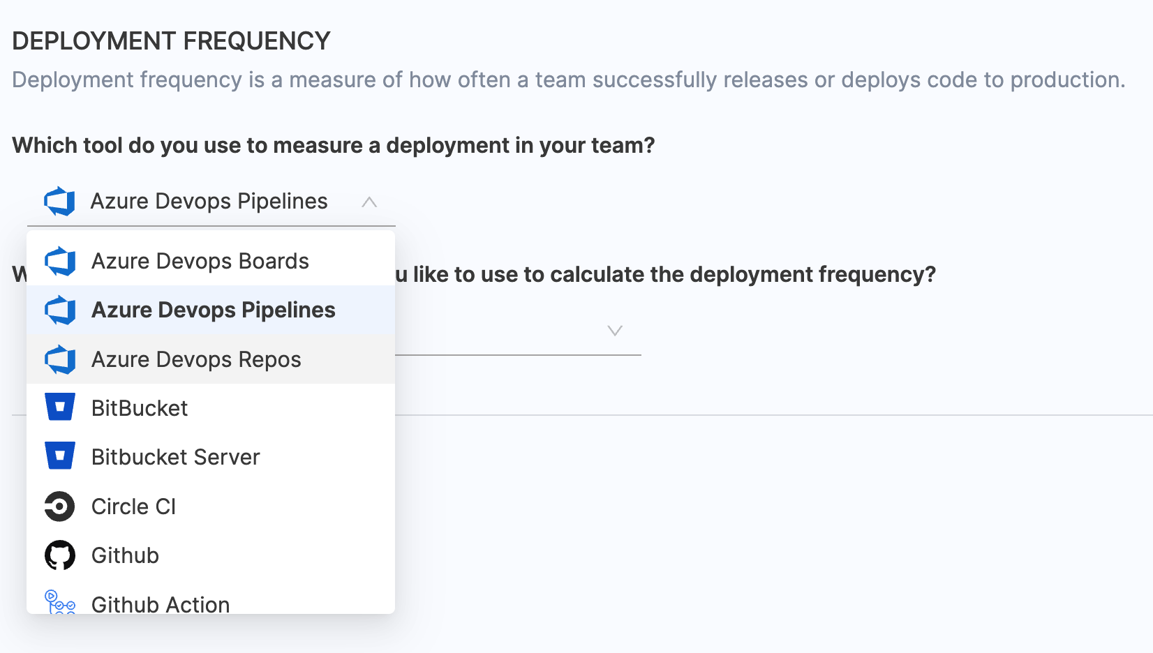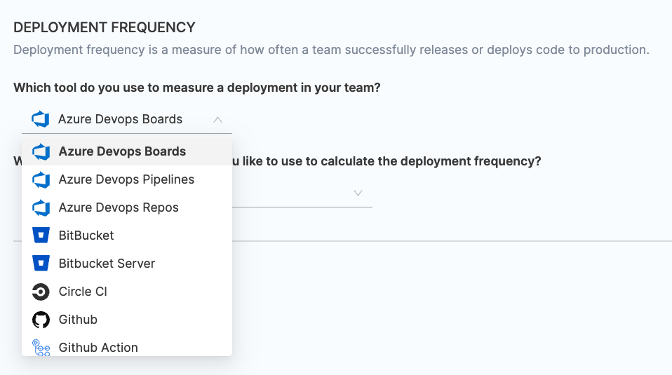 - Choose BitBucket / BitBucker Server as the tool that you use to measure change failure rate in your team.