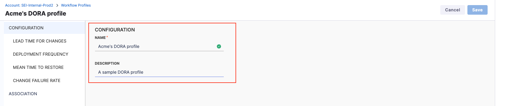 - Choose DORA Profile as the Workflow profile type.