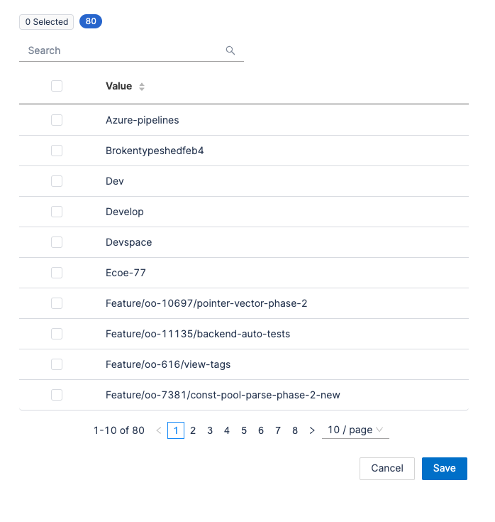 - Select the branch into which the PR will merge (e.g., main or develop). This ensures accurate tracking aligned with your deployment practices. The available branches are based on the data ingested by all the SCM integrations in your account.