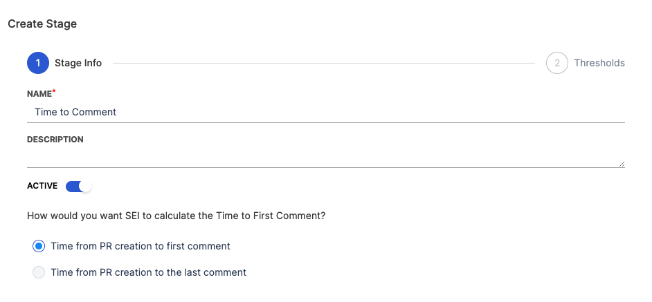 - Choose how would you want SEI to calculate the Time to Comment.