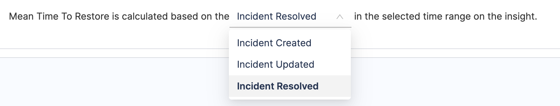 - Incident Resolved: Tracks failure based on when incident type tickets are resolved (e.g., status changes to Closed).