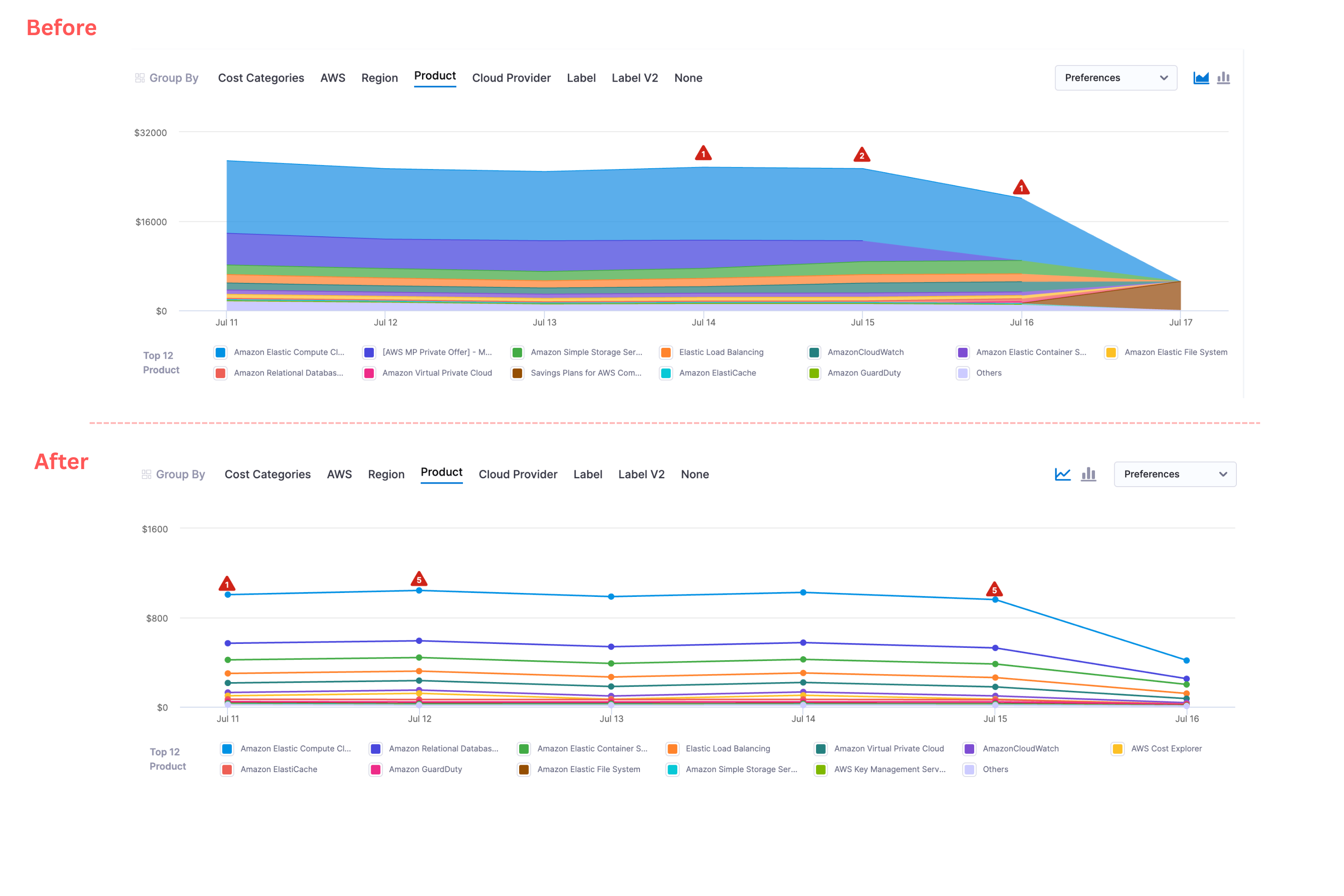 - Reports remain reliable across all views whether filtered by namespace, labels, or other categories.