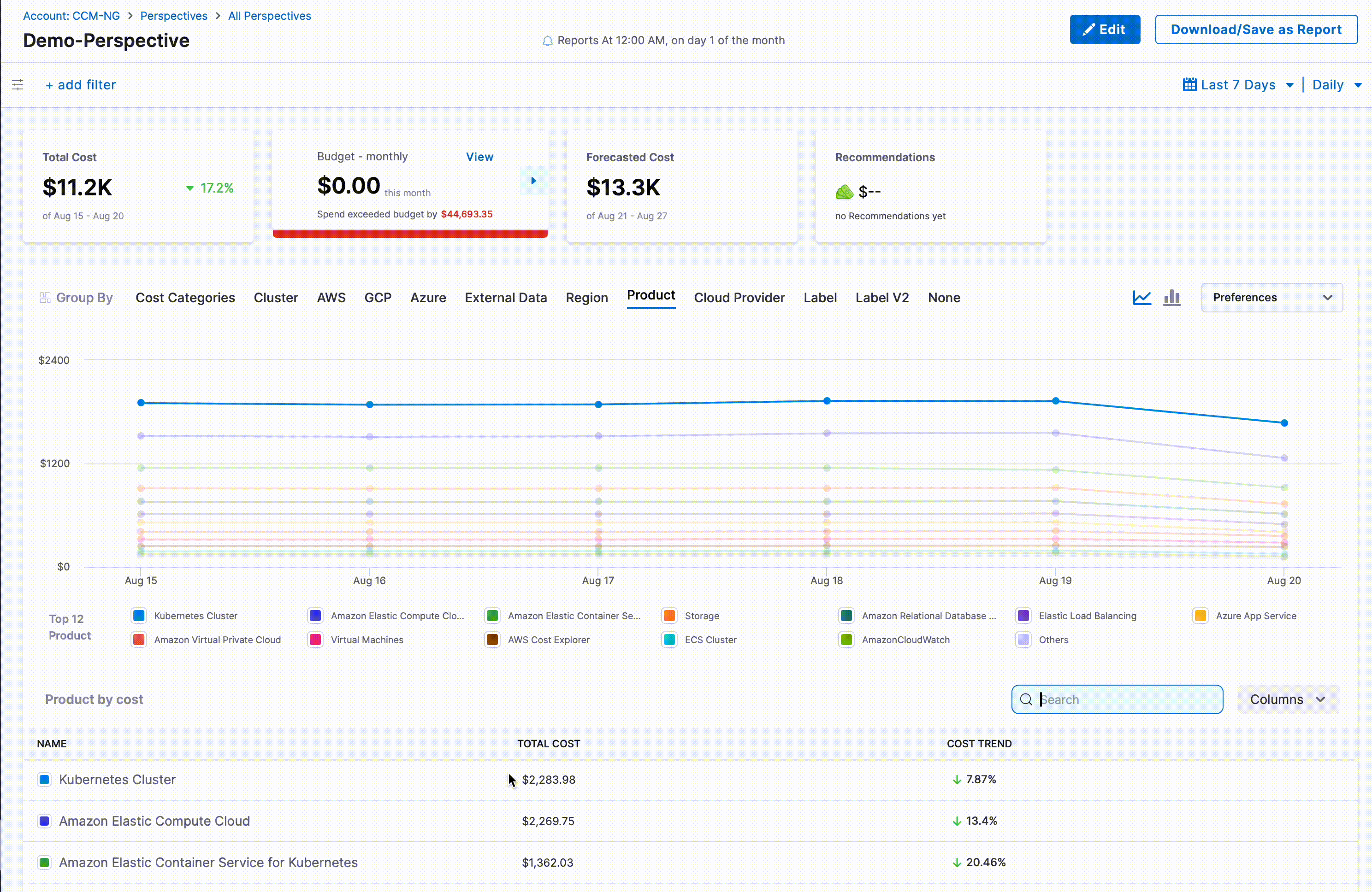 - Centralized Management: access, edit, or delete all saved reports under Cloud Costs > Perspectives > Saved Reports.