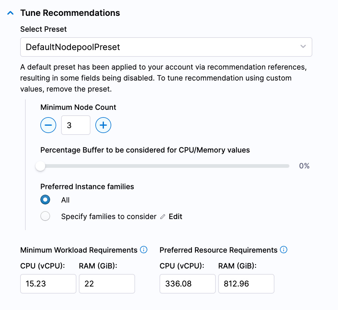 We have added Cluster Capacity Limits in Cluster Orchestrator’s Cluster Configuration. For Karpenter Nodepools, users can now set maximum CPU (cores) and memory (bytes) limits as guardrails to prevent uncontrolled cluster scaling.