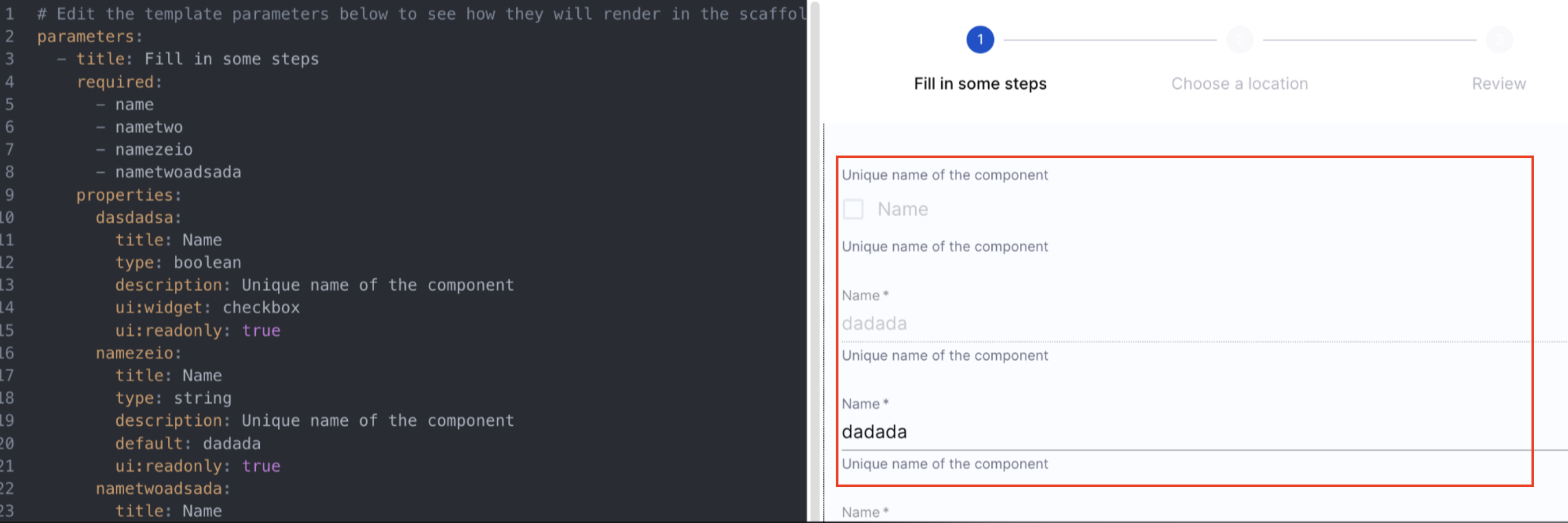• The following UI pickers are now available for use in software templates: