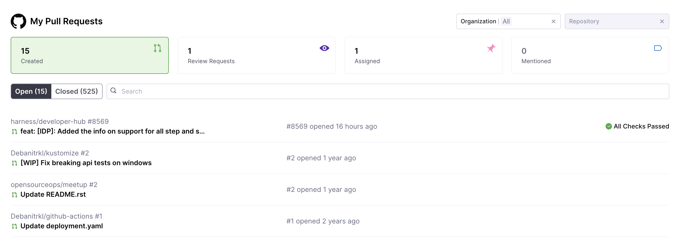 • The interval at which IDP polls Git repositories associated with the software catalog has increased from 5 minutes to 15 minutes. (IDP-749)